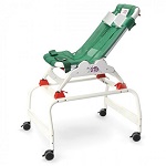 El soporte sostiene al bañista para que lo ayude el cuidador de pie. Tiene acceso abierto para ayudar con la ducha. Este soporte resistente tiene ruedas de bloqueo de rodamiento suave y de larga duración. Los bloqueos de liberación rápida en el soporte permiten colocar y retirar fácilmente la silla.